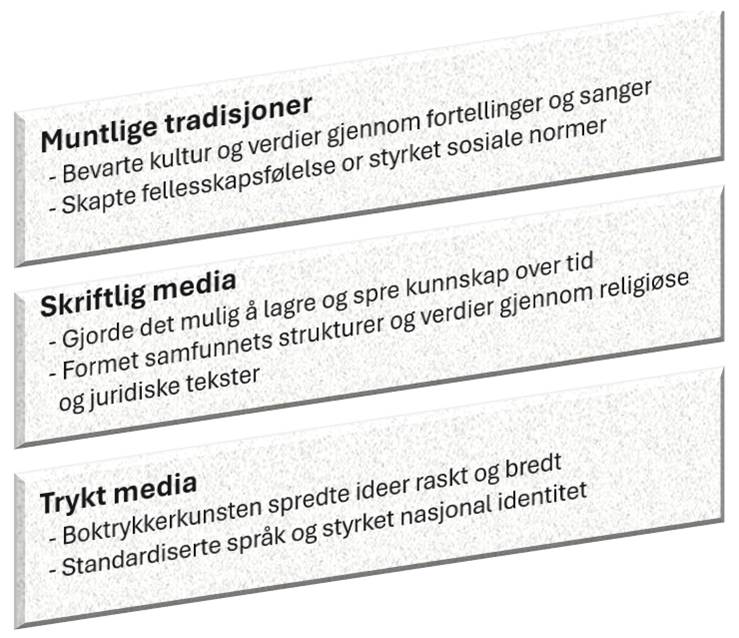 Disse medieformene har lagt grunnlaget for moderne tid ved å utdype felles forståelse og åpne for bredere deltakelse i samfunnslivet.