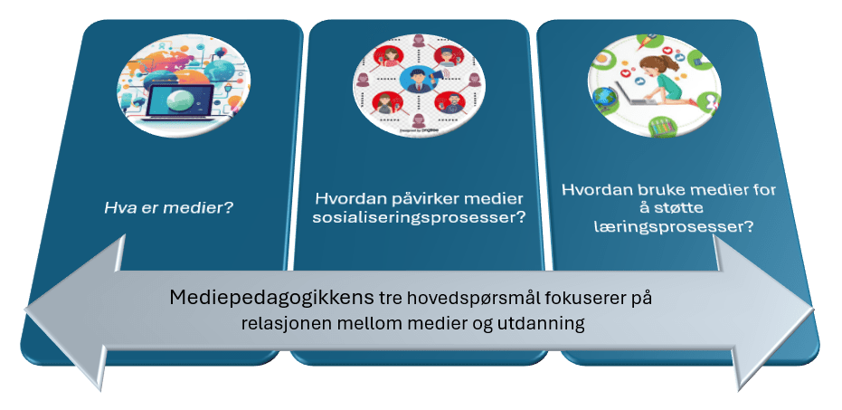 Mediepedagogikken dreier seg altså om tre hovedspørsmål: